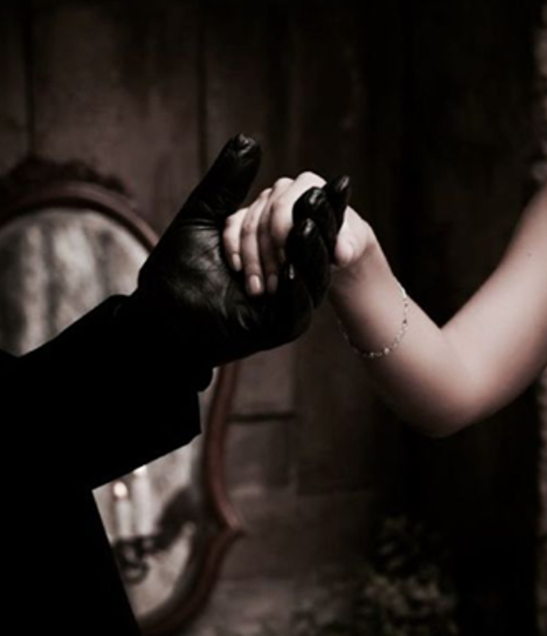 Dříve, než mohla dopadnout na podlahu, ji zachytily paže neznámého muže. Jeho náruč byla pevná, a když se nad ni naklonil, spatřila jen tvář v masce a kápi. Hnědé, pronikavé oči byly to jediné, co z jeho obličeje viděla. Měla pocit, jako by je už někde viděla, ale nedokázala si vzpomenout kde. Dívka byla tak v šoku, že se nezmohla ani na slovo. Mladík ji pevně držel v náručí, zvedl ji a odnesl na nedalekou pohovku, kde ji opatrně položil. Pak zpoza hábitu vytáhl hůlku a jemným švihnutím rozsvítil svícny, které do místnosti dodaly teplý nádech, avšak stále zachovaly převažující šero komnaty. Druhým mávnutím hůlky pak do vzduchu pozvedl karafu, ze které nalil dvě sklenice. Jednu pak přivolal k sobě, druhou k dívce a čekal, jestli ji přijme. Dívka byla stále v šoku, ale stačilo jen rozevřít dlaň a nádherně broušená sklenice ji zapadla do dlaně. Sevřela ji a napila se. Snad aby získala čas… nebo aby se přesvědčila, jestli je tohle všechno skutečné, nebo se jí to jenom zdá.
